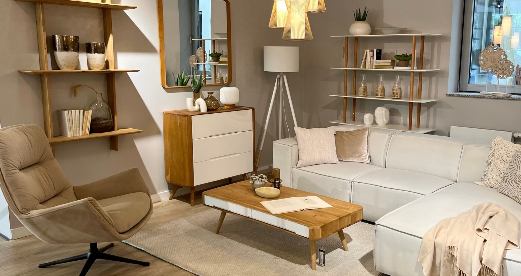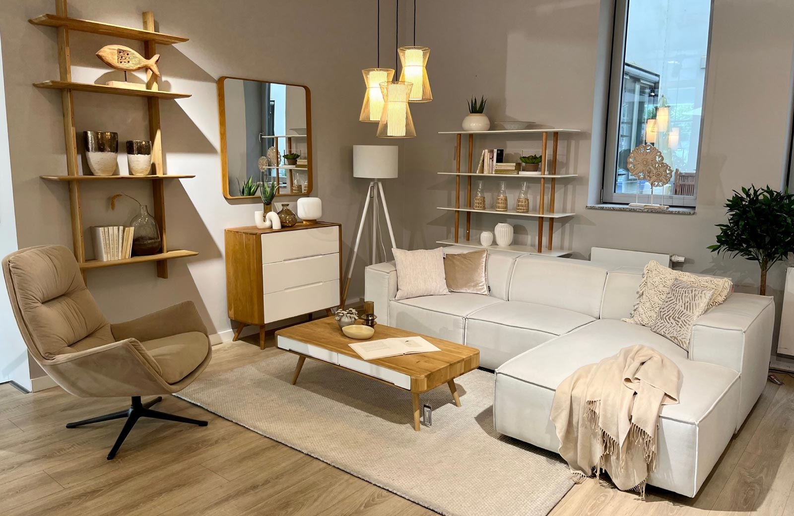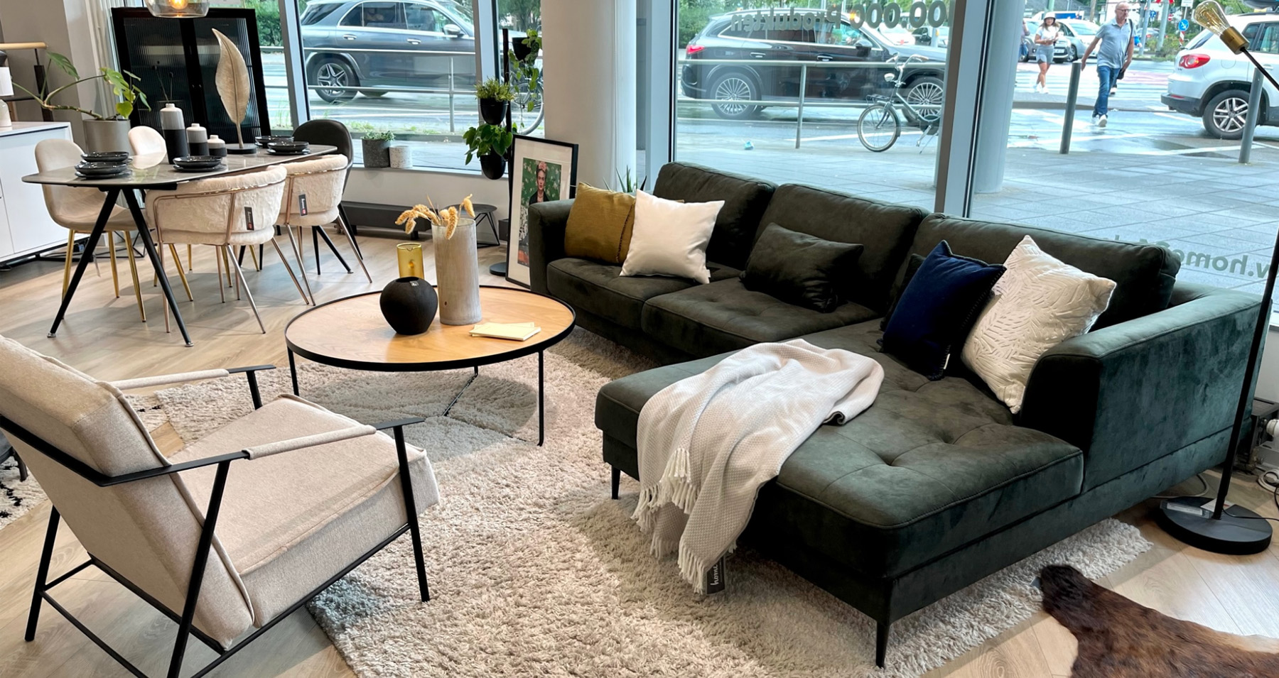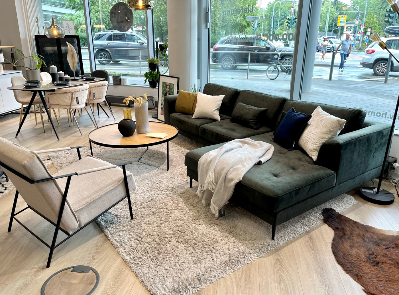 Nicht nur in Sachen New Work ist das BeOne am Puls der Zeit. Auch in den Retailflächen im Erdgeschoss trifft digital auf analog. Hier hat der beliebte Onlinestore home24 einen Showroom für seine Möbel und Wohnaccessoires eingerichtet. In stylishem Ambiente können Neugierige und Kunden Möbel, Lampen und Wohnaccessoires live erleben, mit feinen Stoffen auf Tuchfühlung gehen oder auf dem neu entdeckten Sofa einfach mal Probe sitzen. Manchmal geht es eben doch besser real – sowohl hier als auch im Büro.